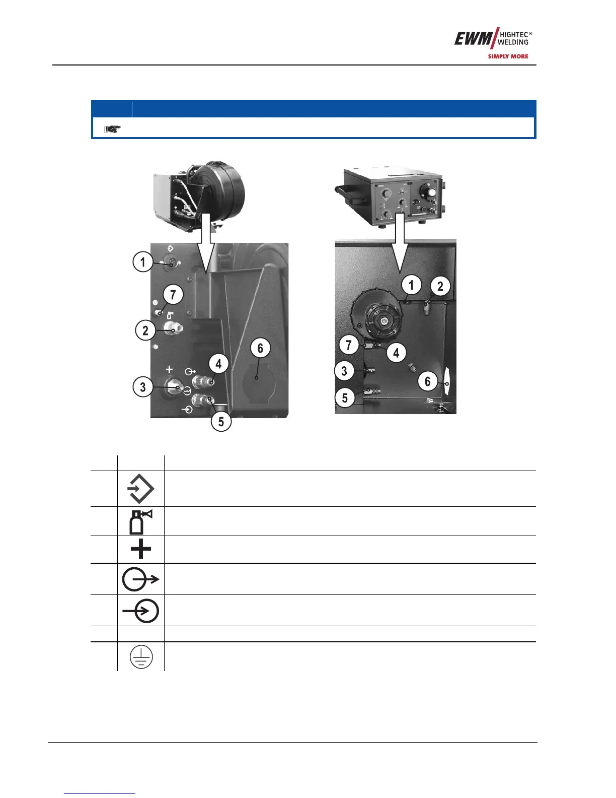 • Insert the plug on the welding current lead into the welding current connection socket "+" and lock.
