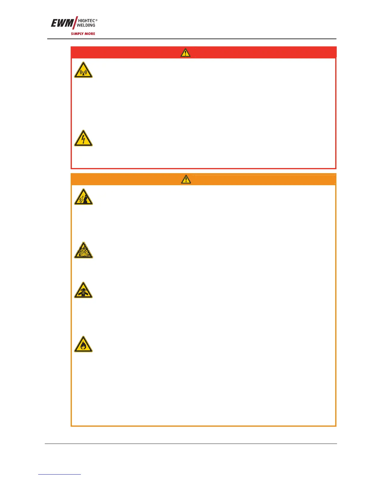 • Never heat explosive liquids, dusts or gases by welding or cutting!