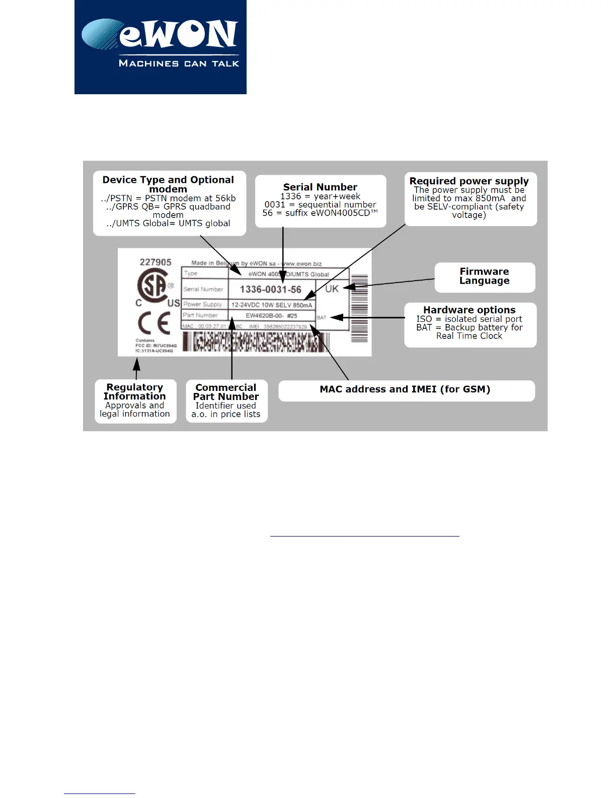 manufacturer. Therefore, next to the product label, each eWON has its serial number stored