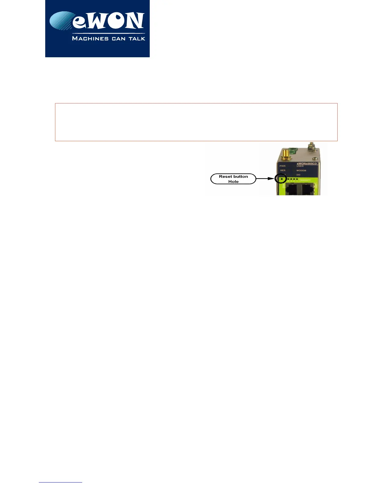 You should not reset your eWON unless you have been told to do so by someone of our