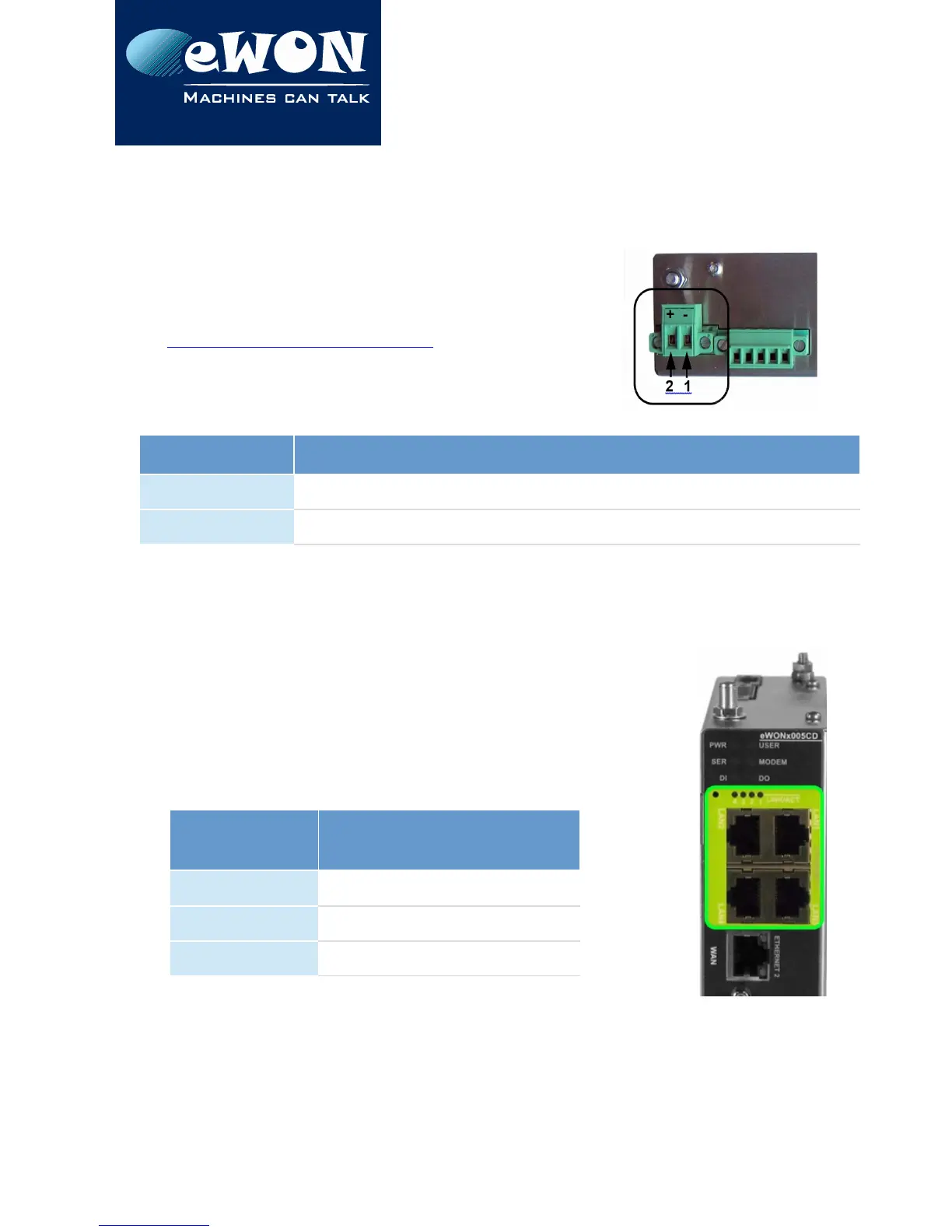 By default, only the LAN Ethernet interface of the eWON4005CDTM can be used to access the