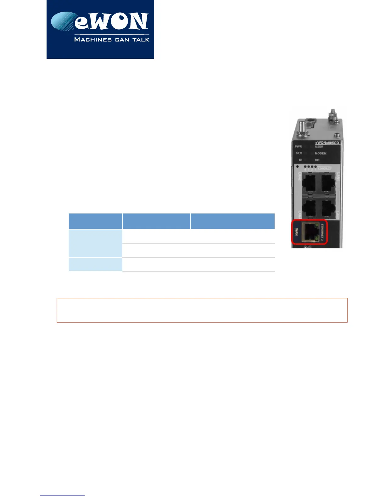 The eWON can be accessed by a 10/100BaseTX Ethernet connection.