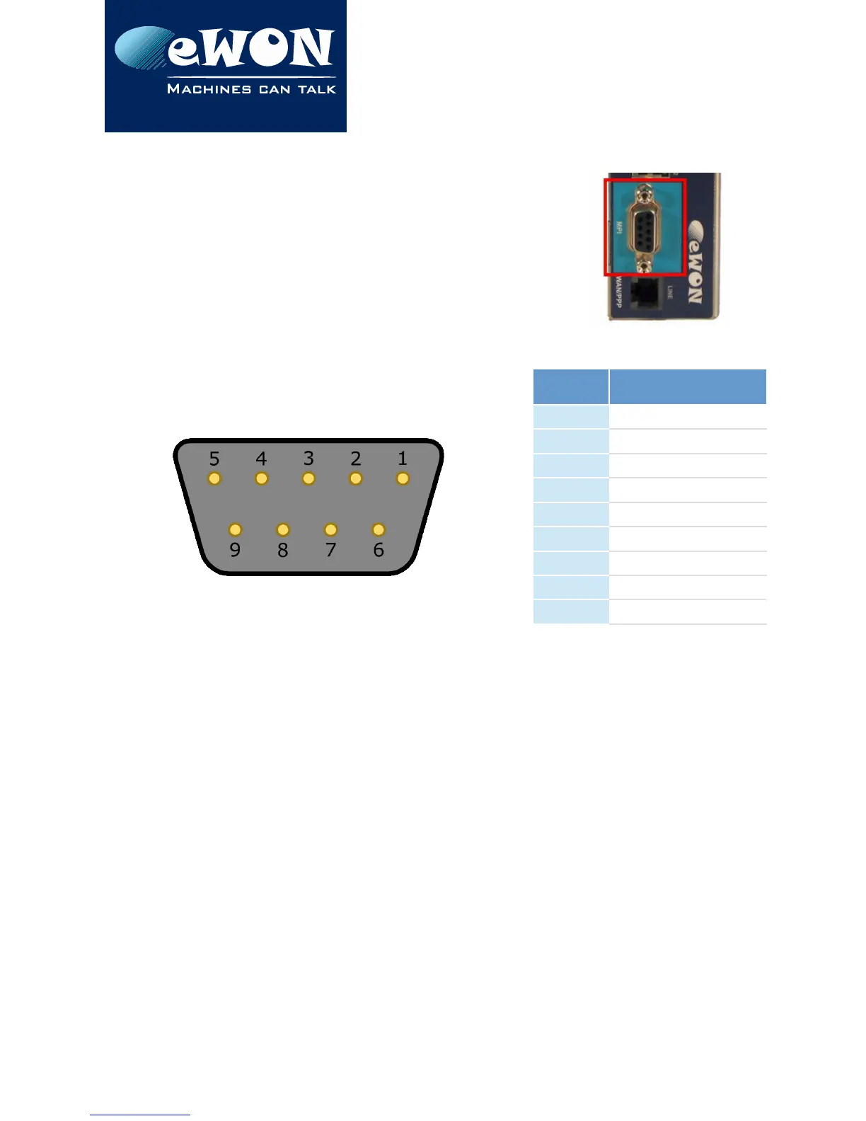 MPI port pin-out (DB9 female):