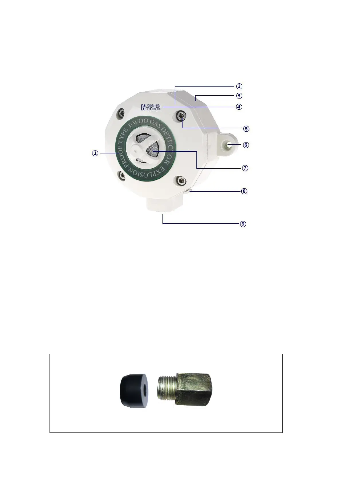 ⑤ Cover fixing hole: The bolt for fixing cover and body of detector