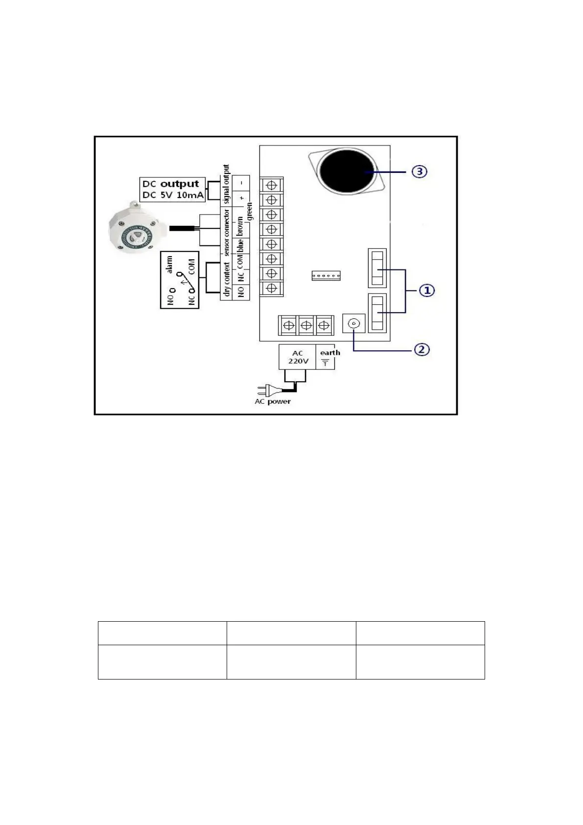Alarm signal to the control panel and others (DC 12V 20mA)
