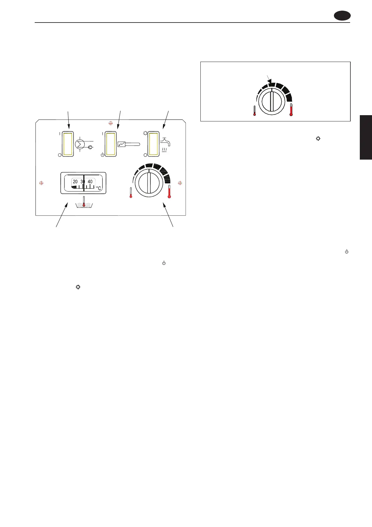 V položaju stikala „I“ je palièni grelnik stalno vklopljen, v položaju „ “ je palièni