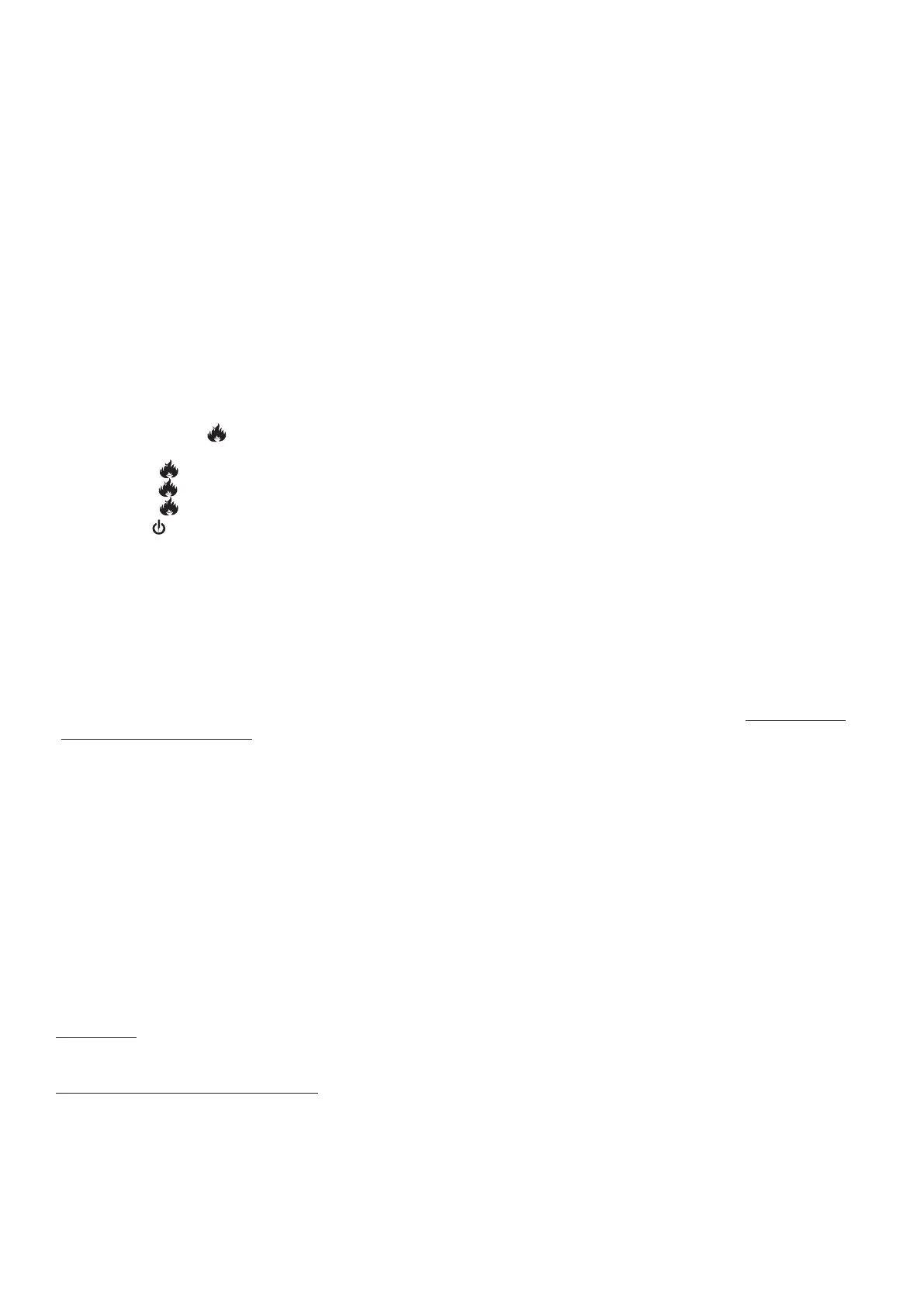 Vuelva a pulsar para activar el efecto de llama y el máximo de calor. Escuchará tres señales acústicas.