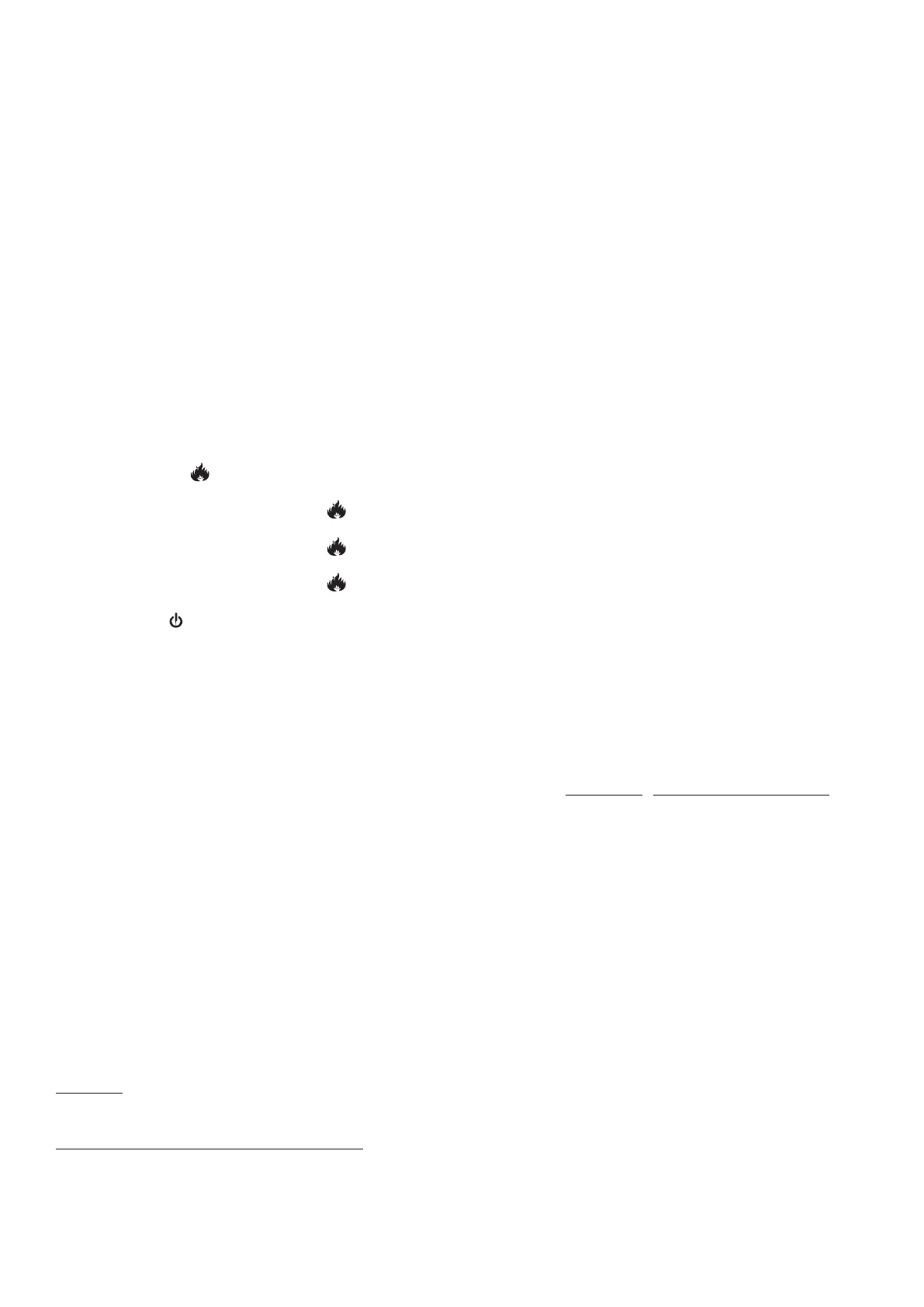 Należy ponownie nacisnąć przycisk , aby uzyskać efekt płomienia i pełną moc grzania. Zostanie to zasygnalizowane trzema