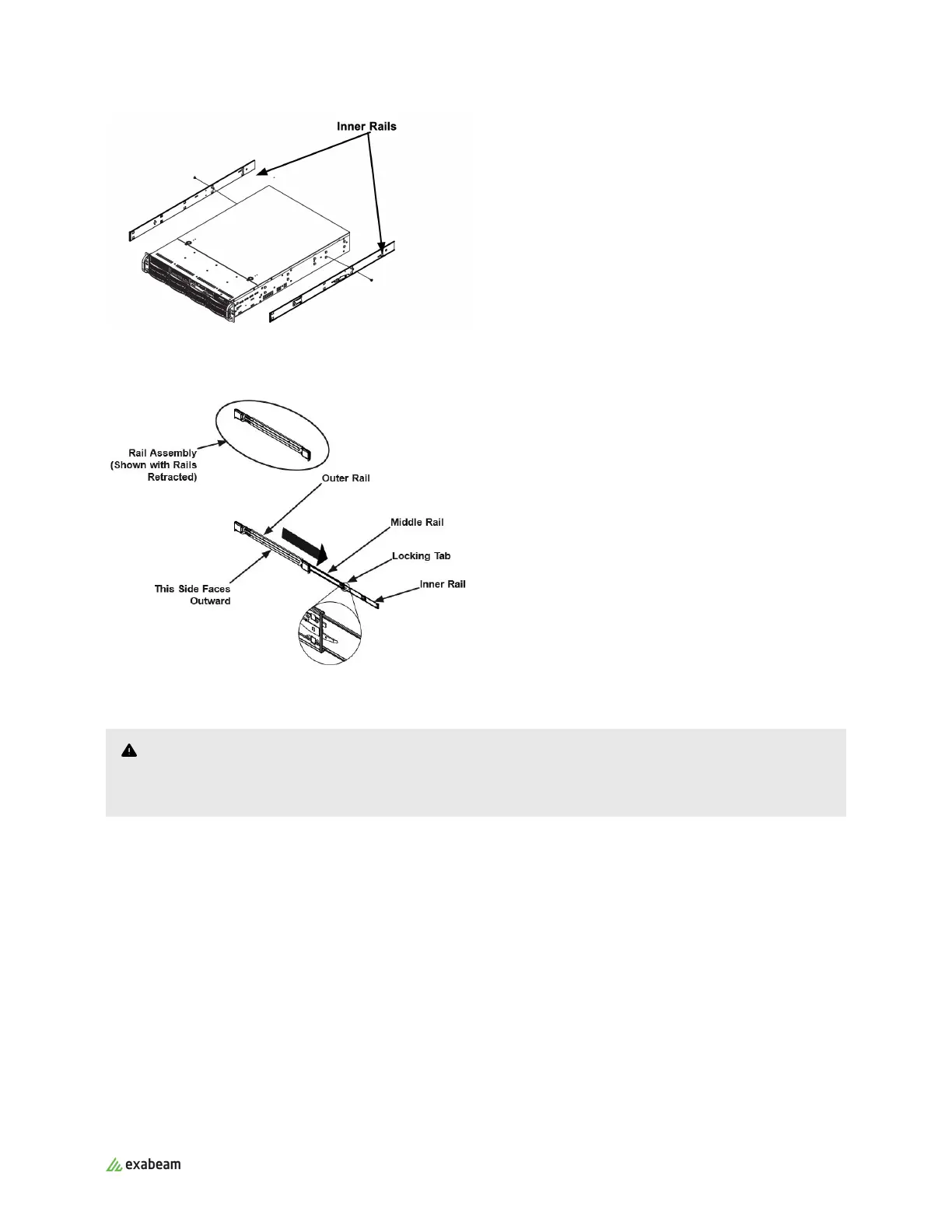 1. Pull the inner rail out of the outer rail until it is fully extended as illustrated below.