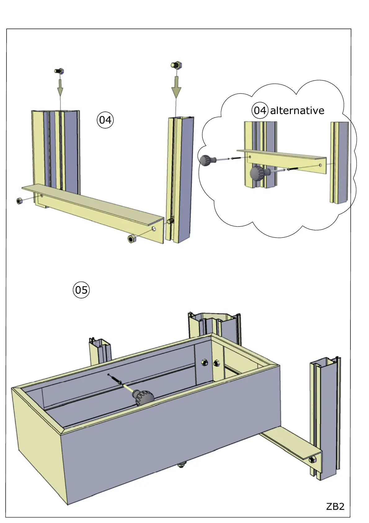 5. Attach the seed tray to the uprights with self tapping screws. If you do not have self tapping screws