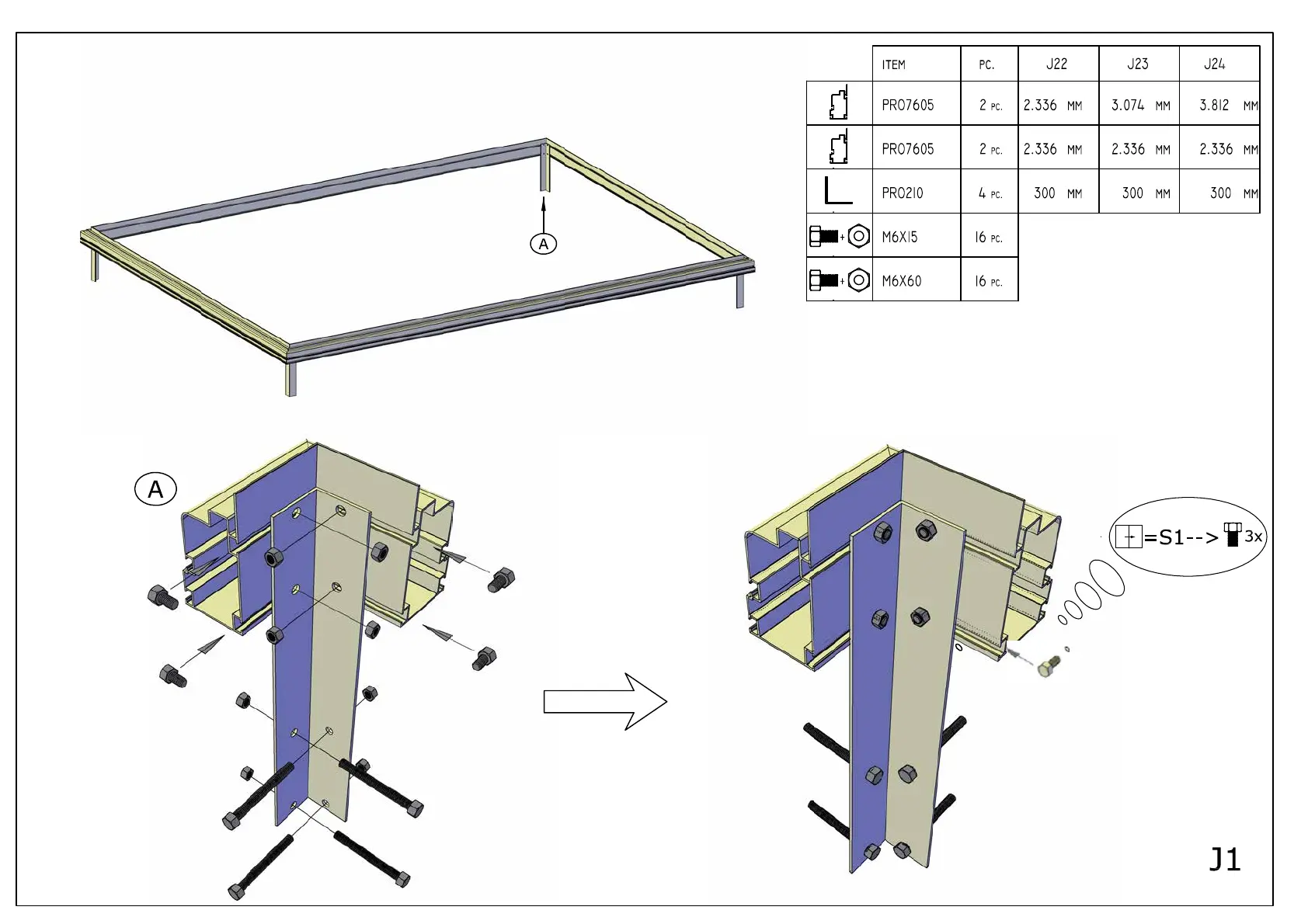 M6x15 bolts as shown for