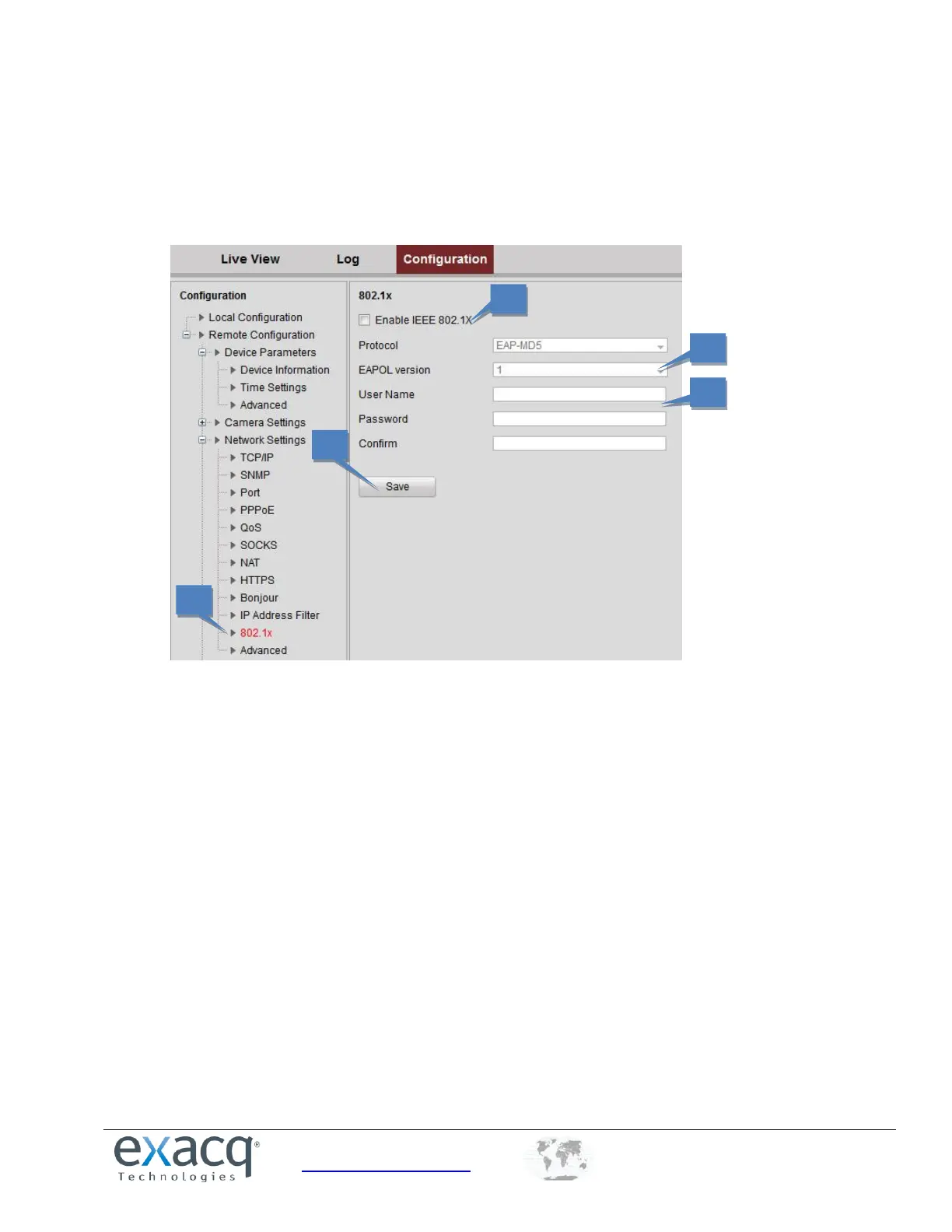 1. From the Remote Configuration menu, select Network Settings and then 802.1x to open the IP address filter