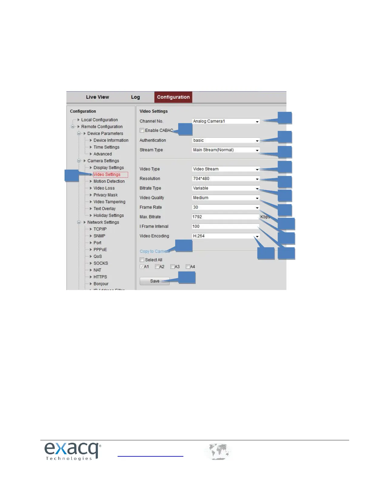 1. From the Remote Configuration menu, select Camera Settings and then Video Settings to open the Video