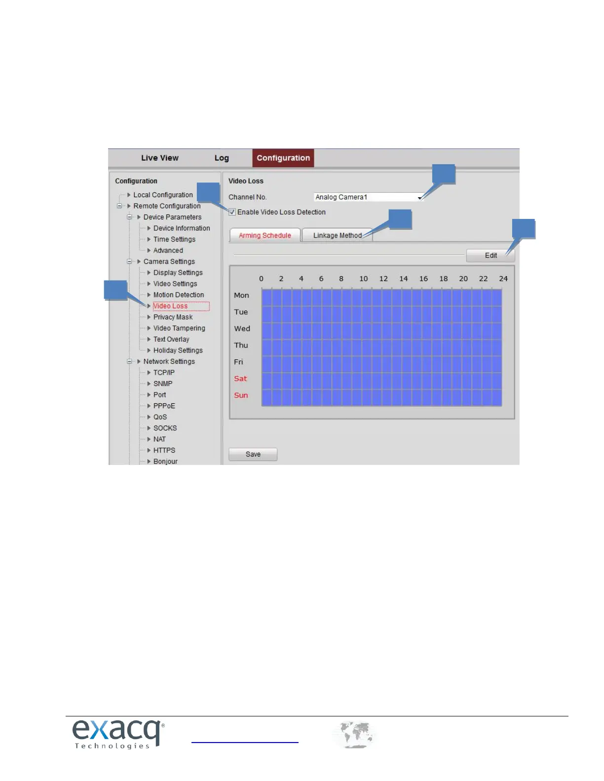 1. From the Remote Configuration menu, select Camera Settings and then Video Loss to open the video loss alarm