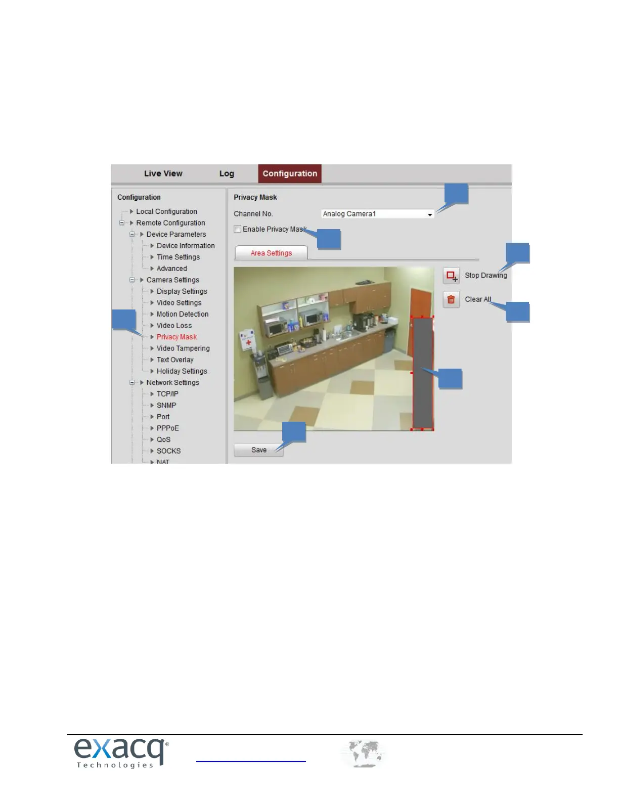 A Privacy Mask enables you to cover certain areas on the video of the channel to from live viewing and recording. To