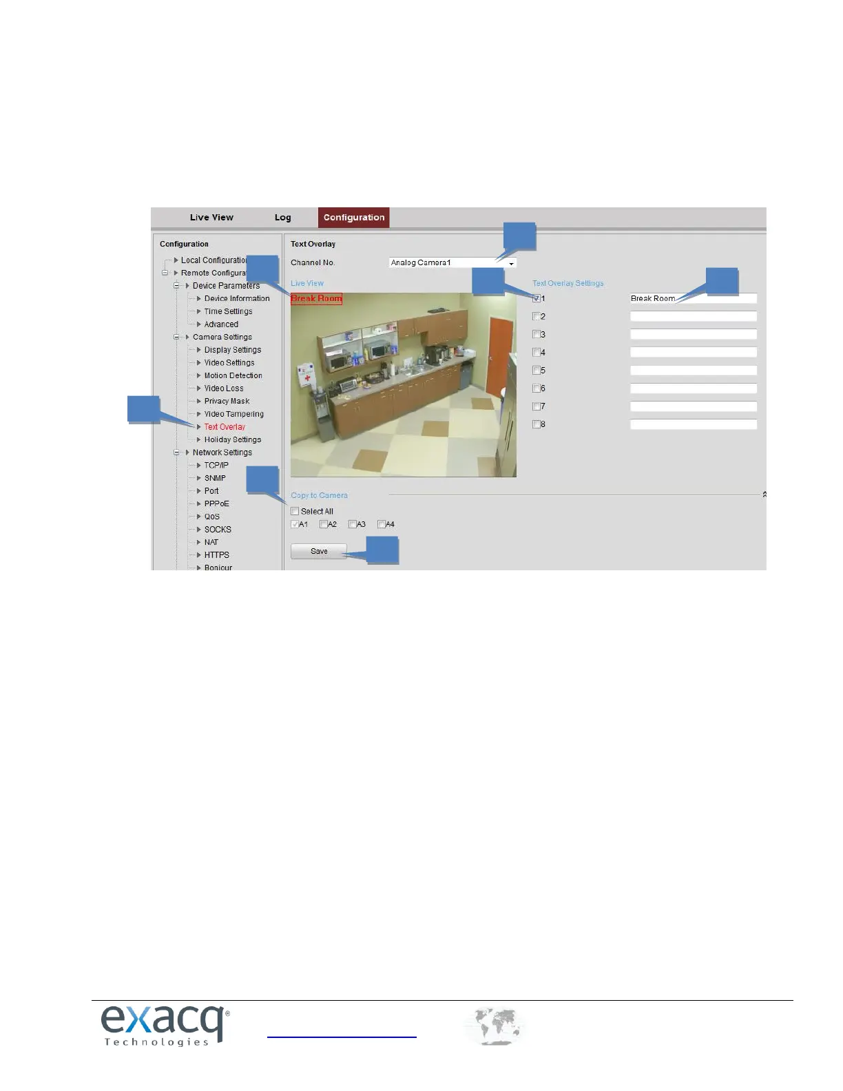 1. From the Remote Configuration menu, select Camera Settings and then Text Overlay Settings to open the Text