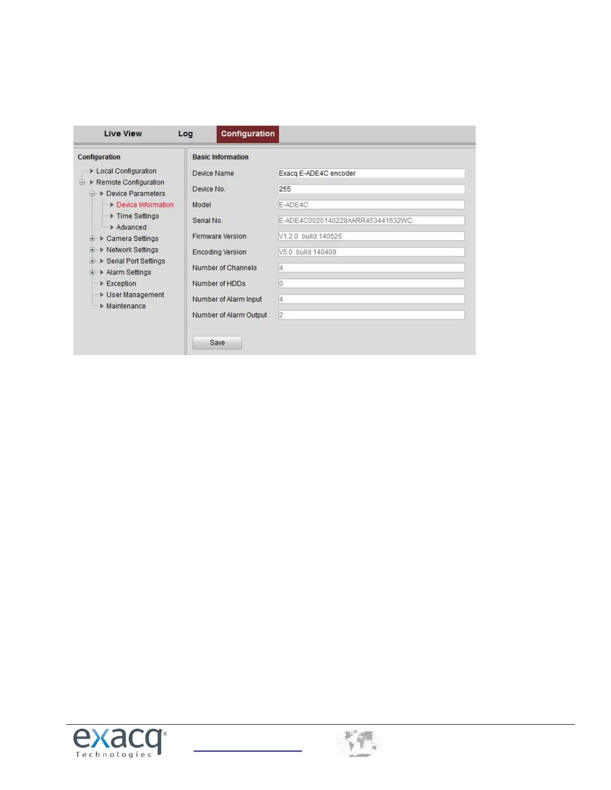 From the Remote Configuration menu, select Device Parameters and then Device Information to open the Device