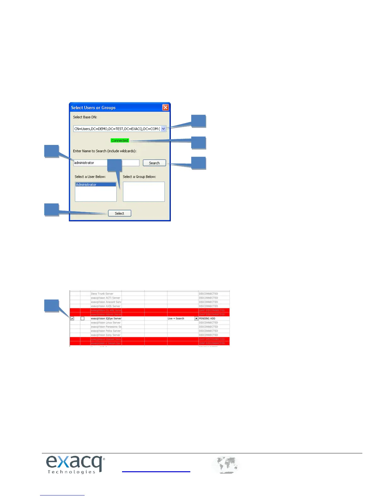 NOTE: Server entries with a red background have been configured for LDAP integration but are not currently connected.