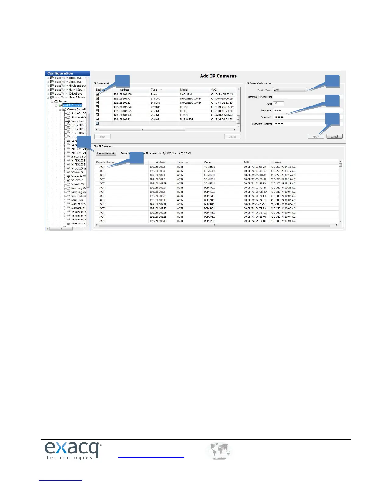 1. The Find IP Cameras section scans for supported IP cameras available on the same network that the system is