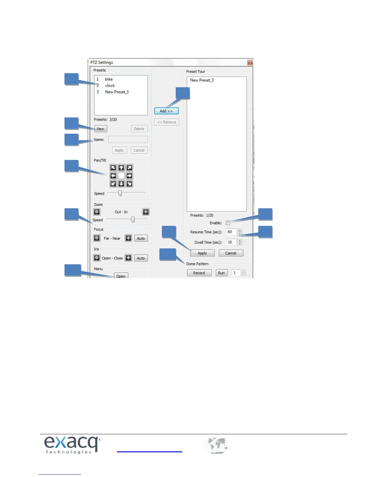 can resume after a user manually controls PTZ functions. Dwell time is the amount of time that the camera stays