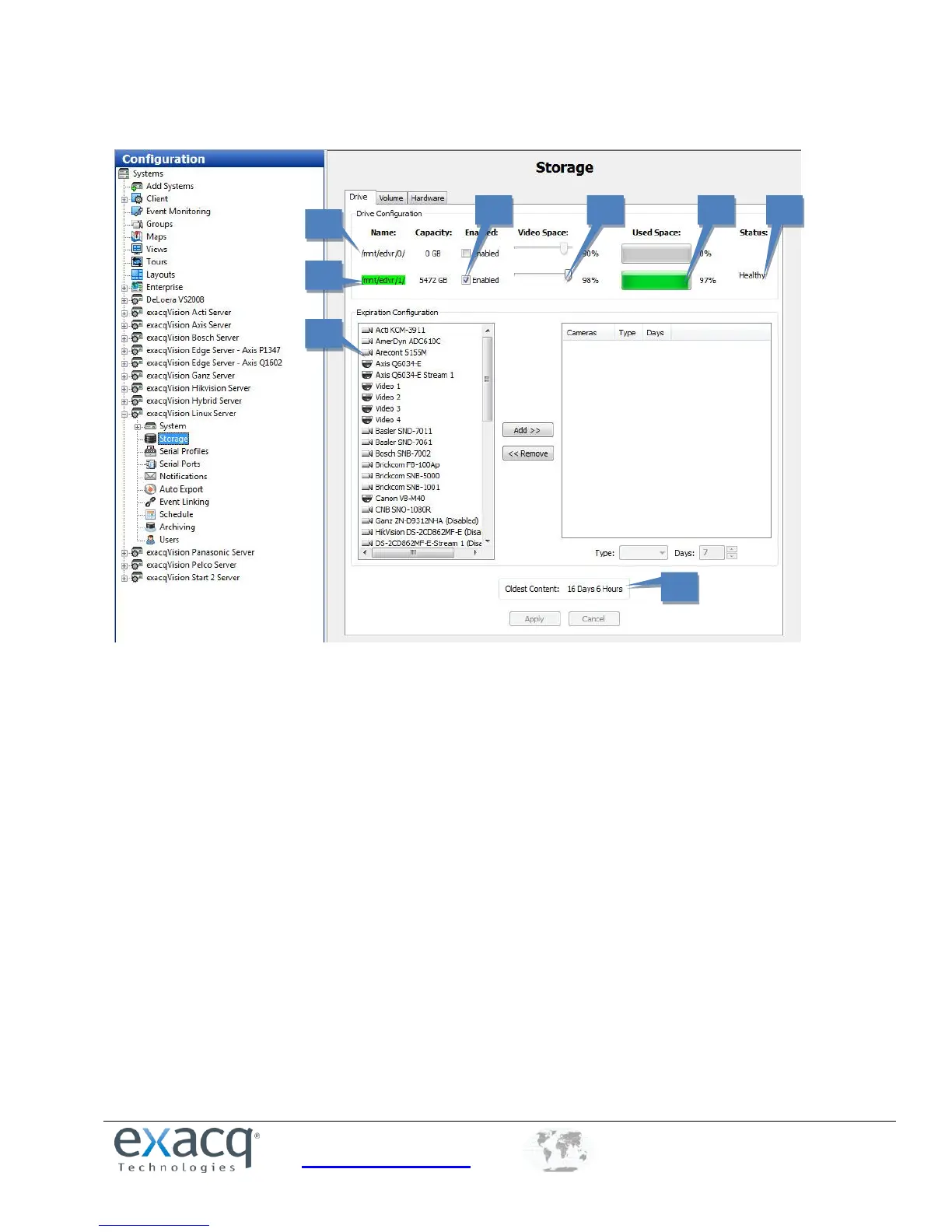 8. Expiration Configuration allows you to set minimum or maximum time periods for video from each camera to be