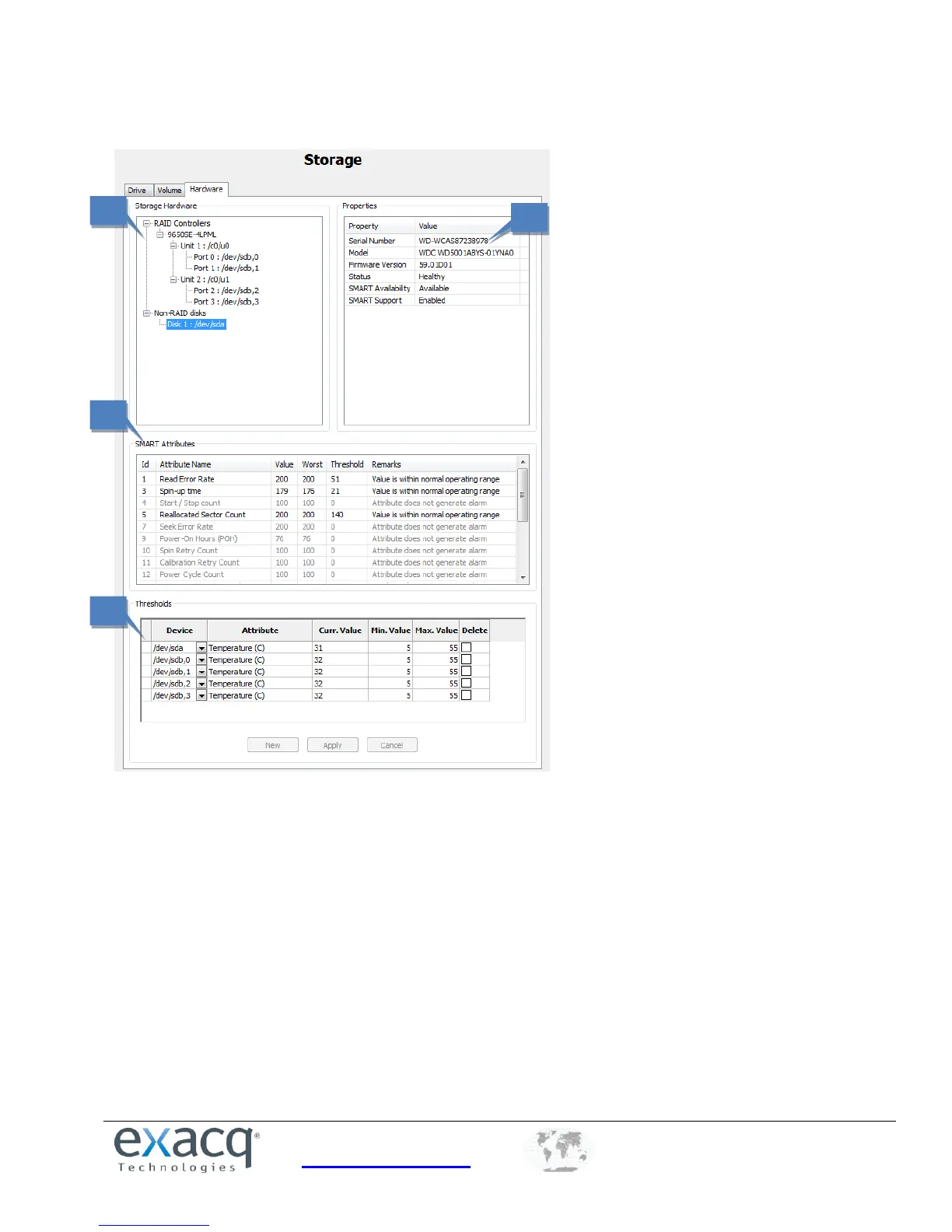 4. The Thresholds section allows you to modify the temperature thresholds for a hard drive. To do this, click New,