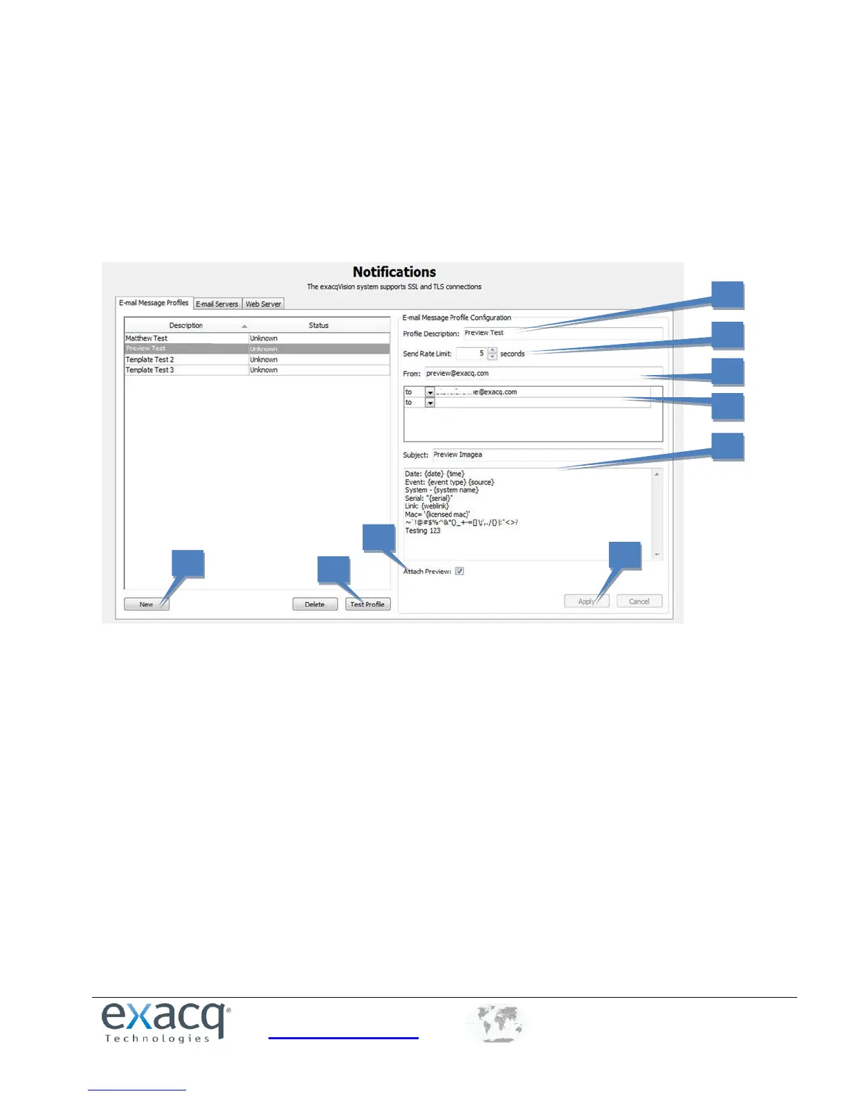 7. Select Attach Preview to attach a brief video clip (in .MOV format) or image of the notified event. The preview