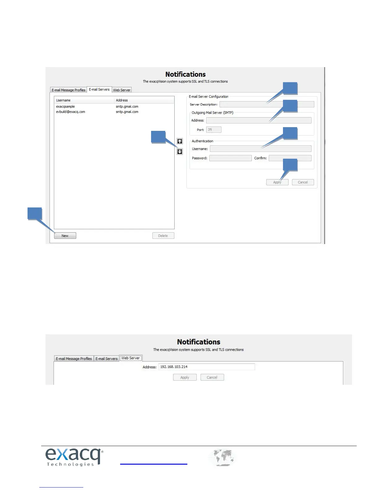 The Web Server tab allows you to enter the IP address of the web server so that email notifications can include a direct