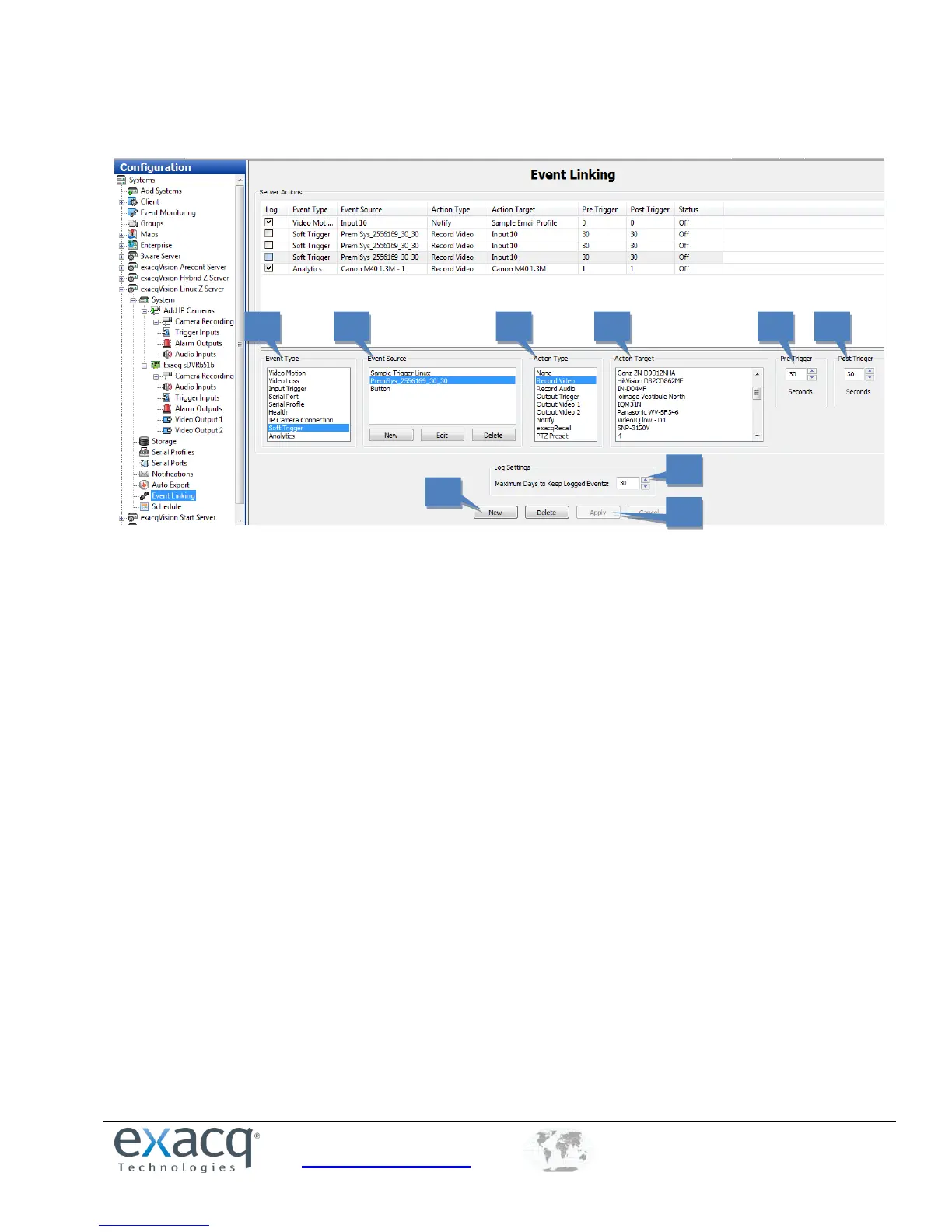 Target (5). These events are then stored in a database (if Log is selected in the Event List) to provide easy search