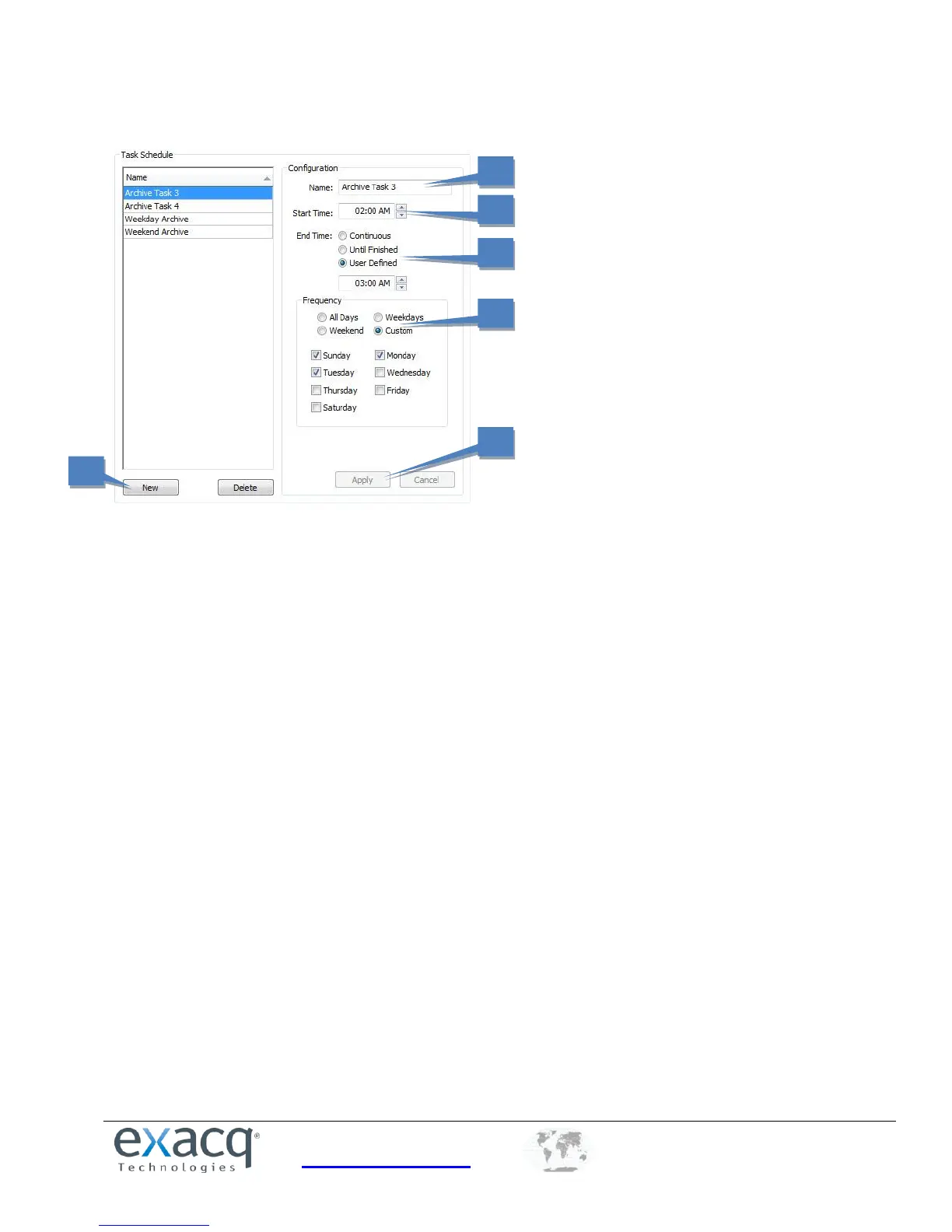 defined task. Also, any applicable data recorded while the archive task is in progress will be archived if
