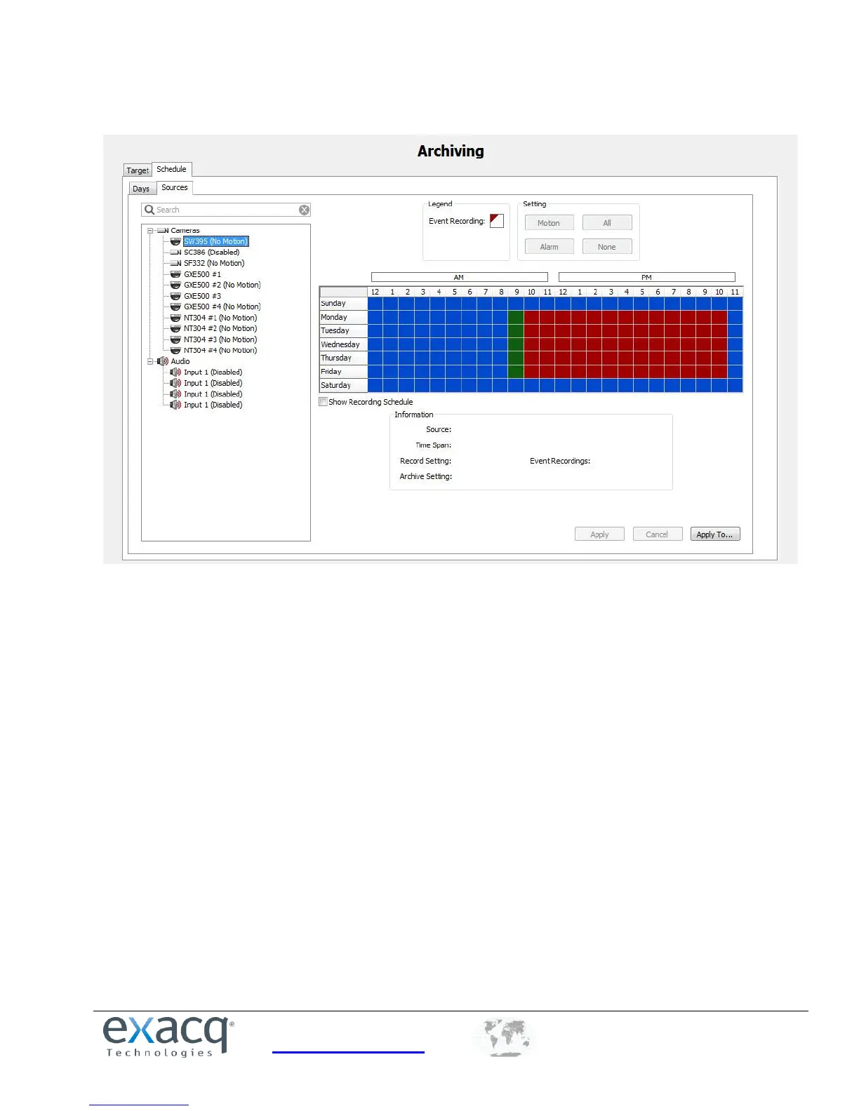 On the Sources tab, you can configure a separate archiving schedule for each device: