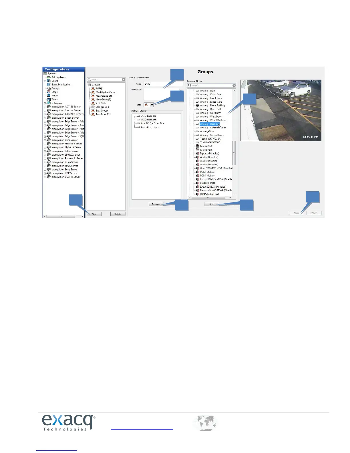 5. Click Add to include the camera name in the Items in Group section. Continue adding cameras until your group is