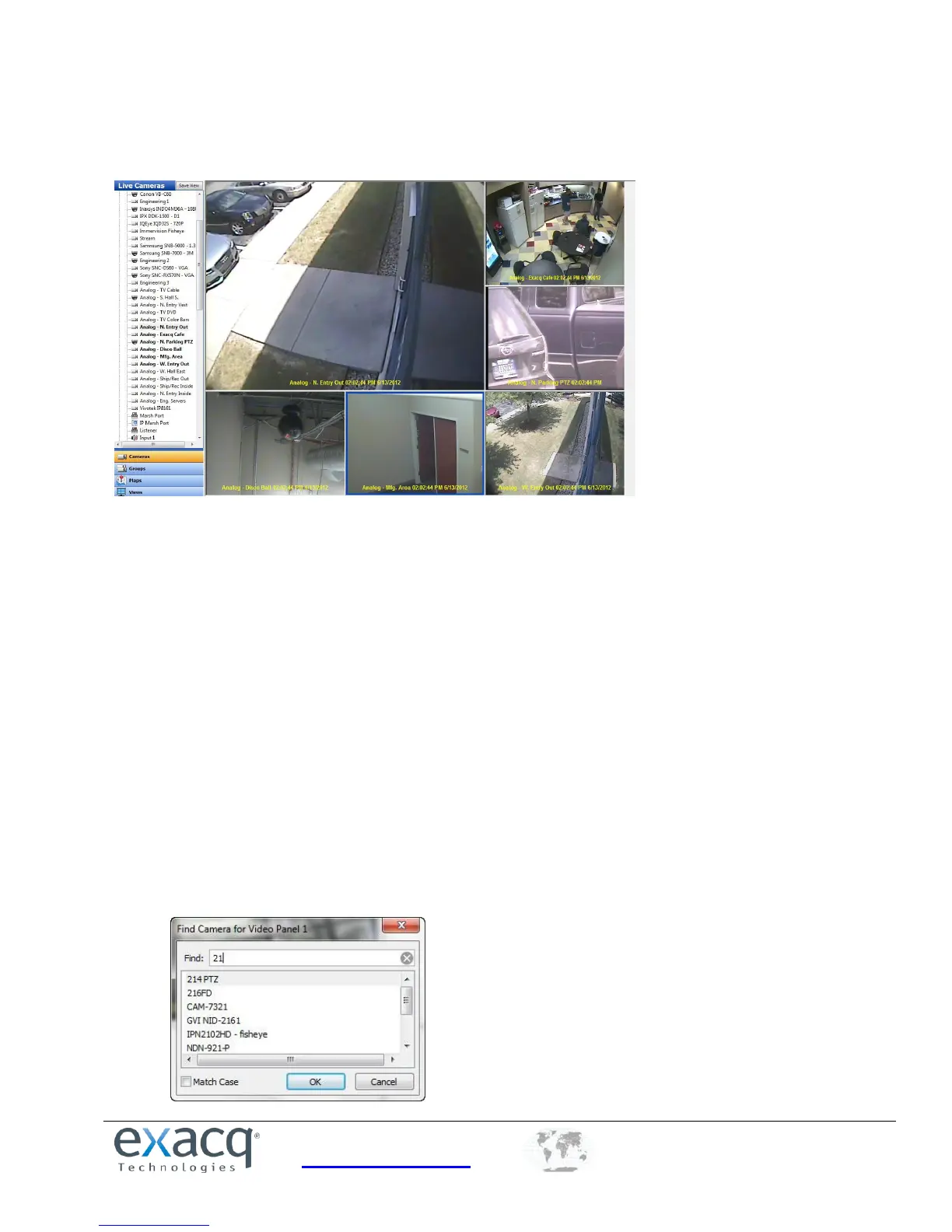 Entrance, and so on), you can quickly find a camera by simply entering one or two numbers in Find Camera.