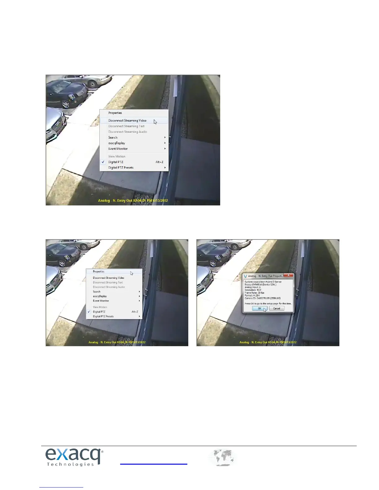 You can also access the Camera Settings page directly from Live Page by selecting Properties, and then clicking the OK