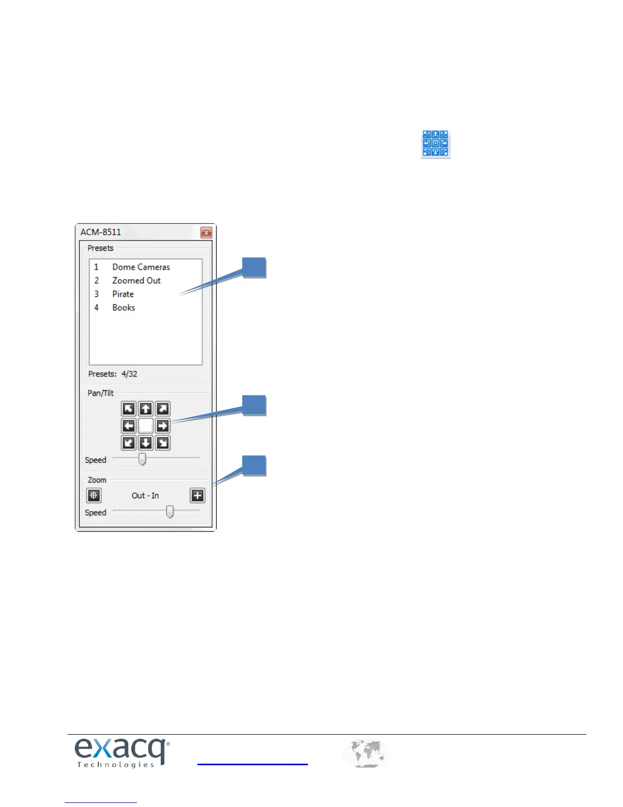 PTZ/preset panel. This panel is available only when a PTZ-enabled camera is displayed in a video window.