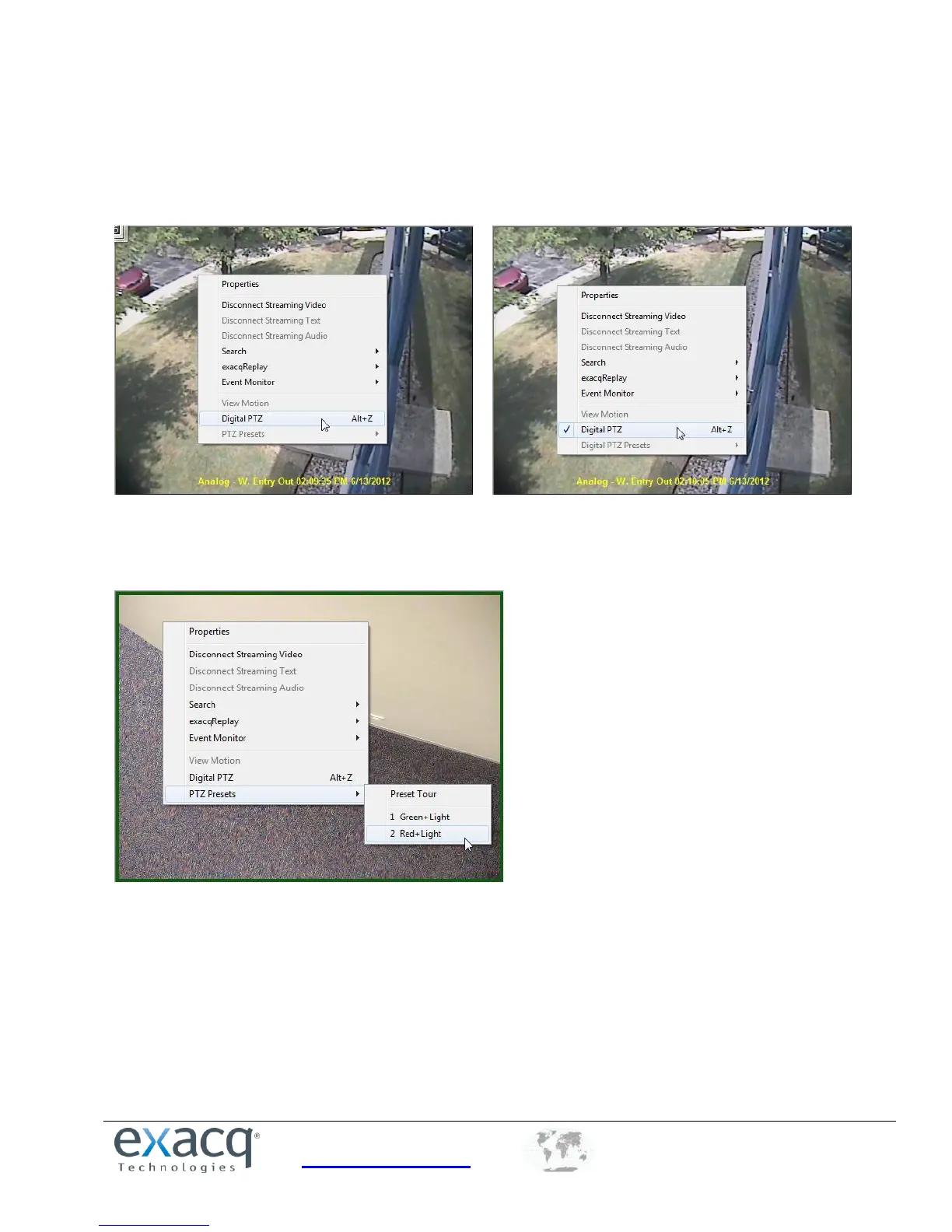 disallowed during setup). To enable digital PTZ, right-click the video window and select Digital PTZ.