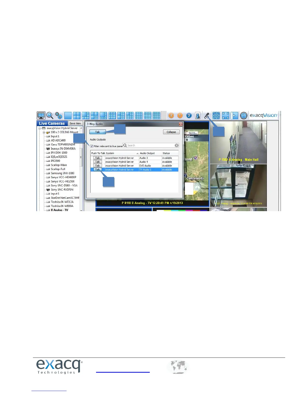 2-way audio allows you to send audio through the system’s audio out connector. To use 2-way audio, complete the