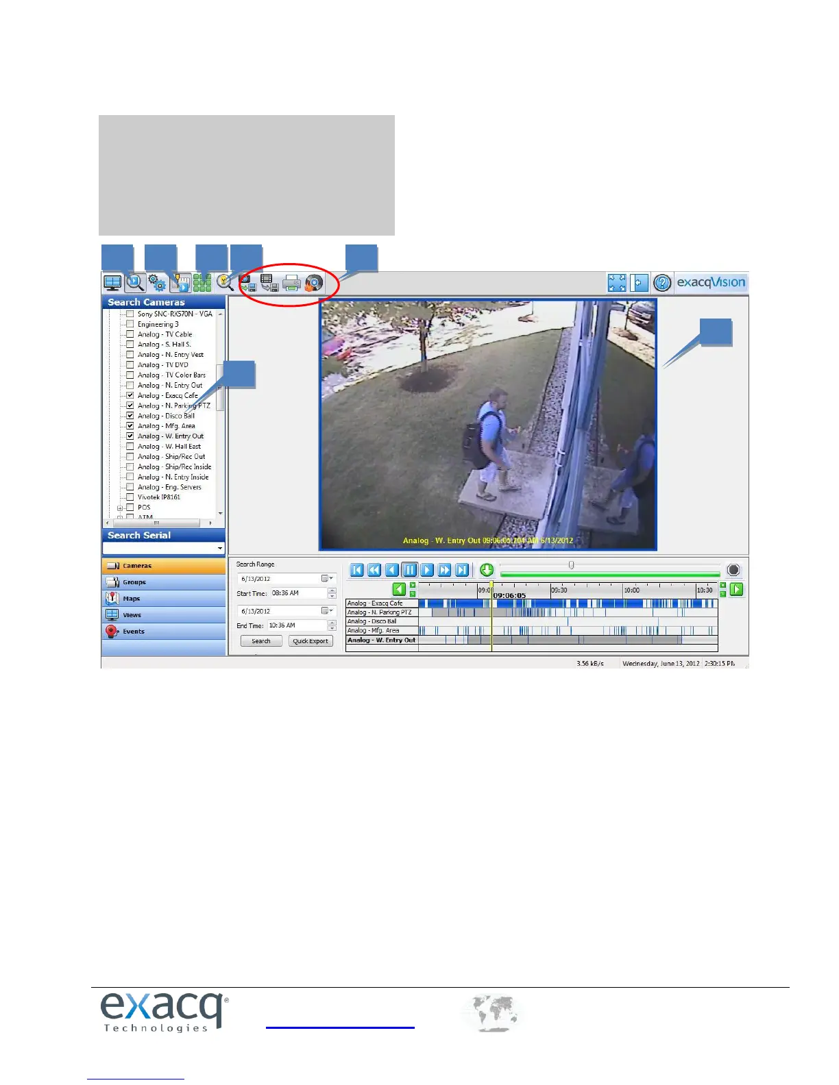 5. Export Buttons. These buttons, available only in Timeline Search Mode, include Save Picture, Export Video, Print