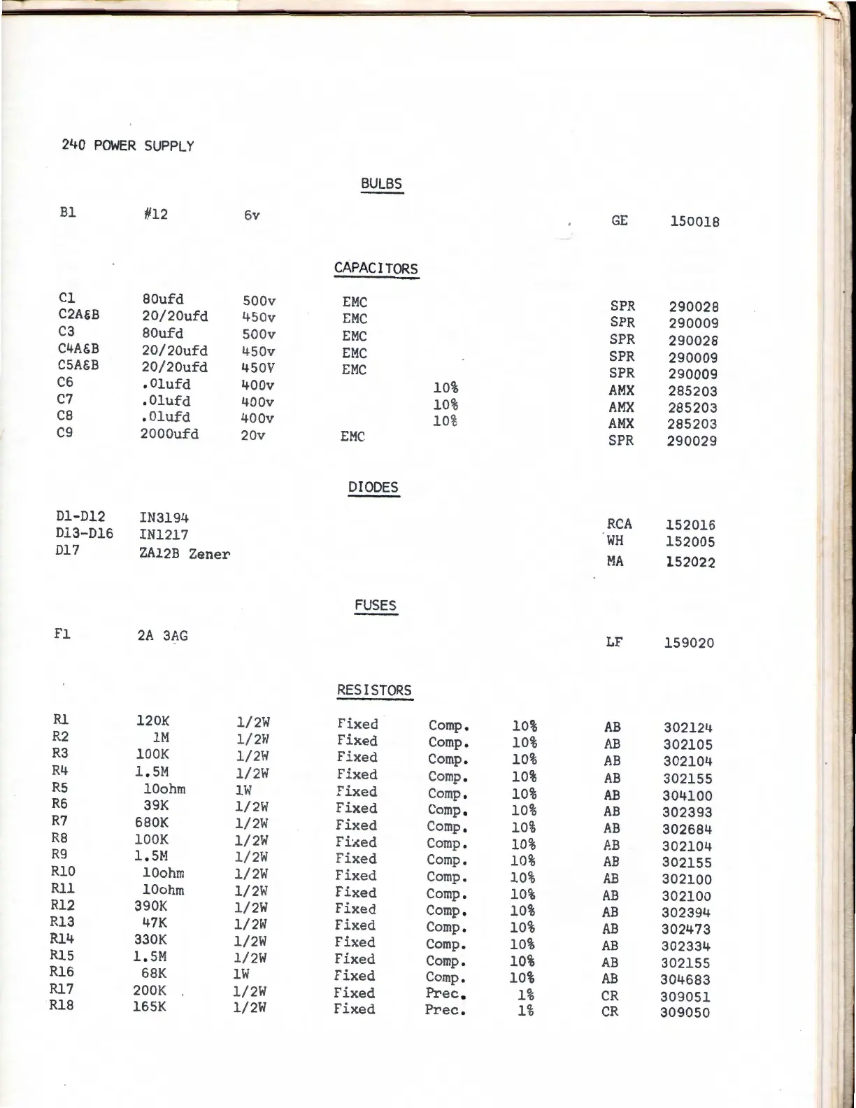 eXact 240 - Capacitors, Diodes, Fuses, and Resistors