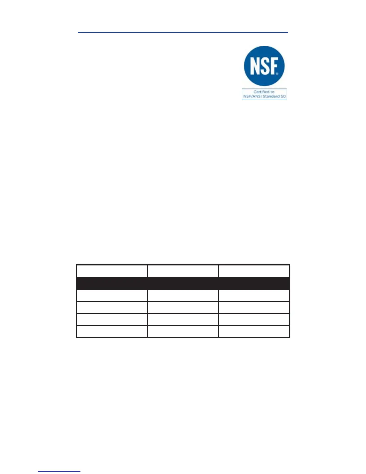 Third-party certifi cation to NSF/ANSI 50 allows manufacturers to