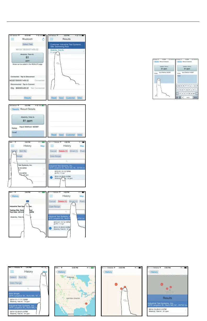 Tap ‘Map’ on ‘RESULTS’ page to access the History Map. Double tap or use fi ngers to zoom