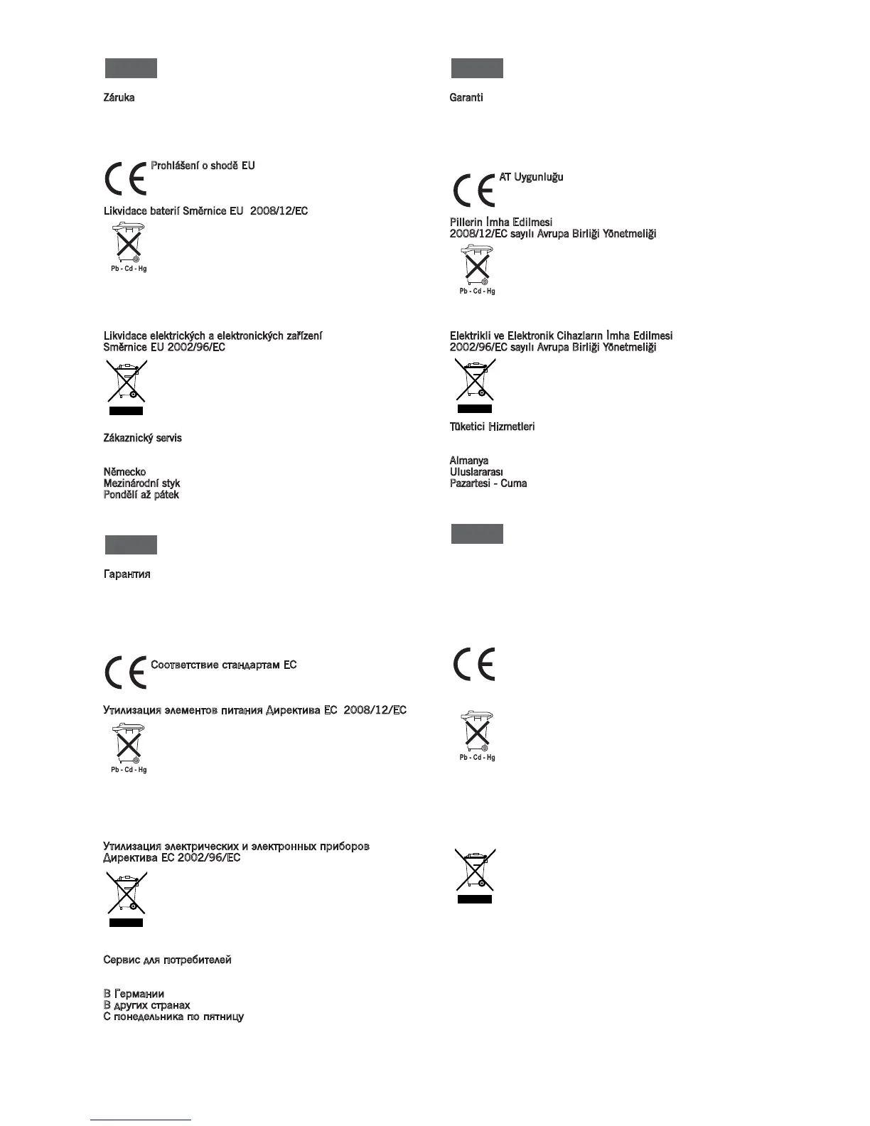 Утилизация элементов питания Директива ЕС 2008/12/EC