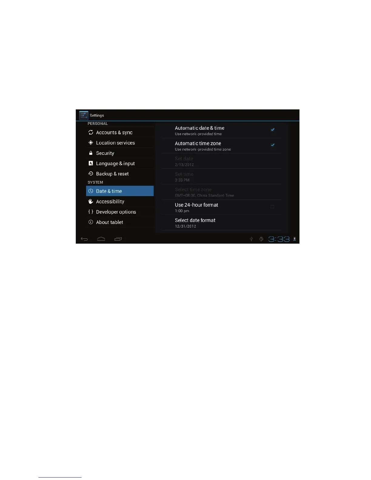You can use network-provided time or time zone, or you can manually setup