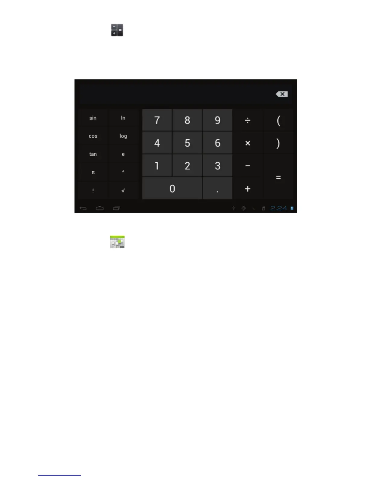The tablet is with built-in calculator, tap on the Calculator icon to carry out your