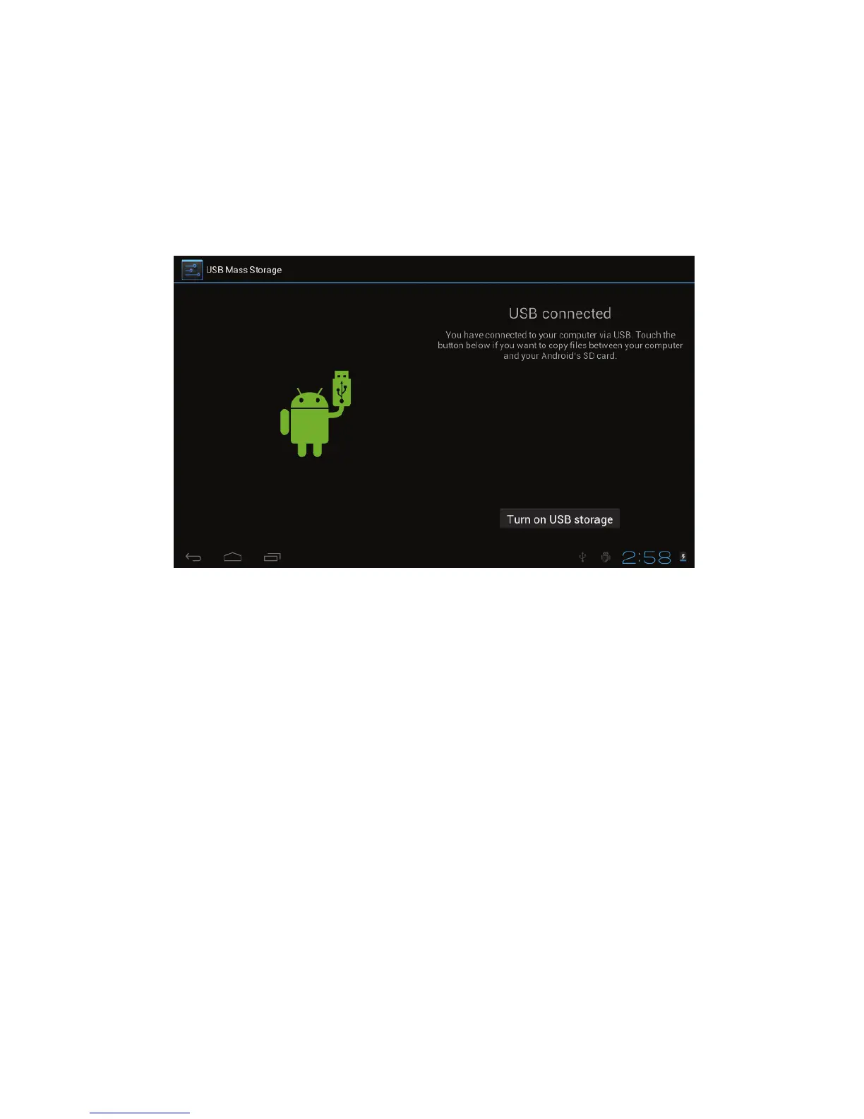 up the USB connection window, click “Turn on USB storage” to connect