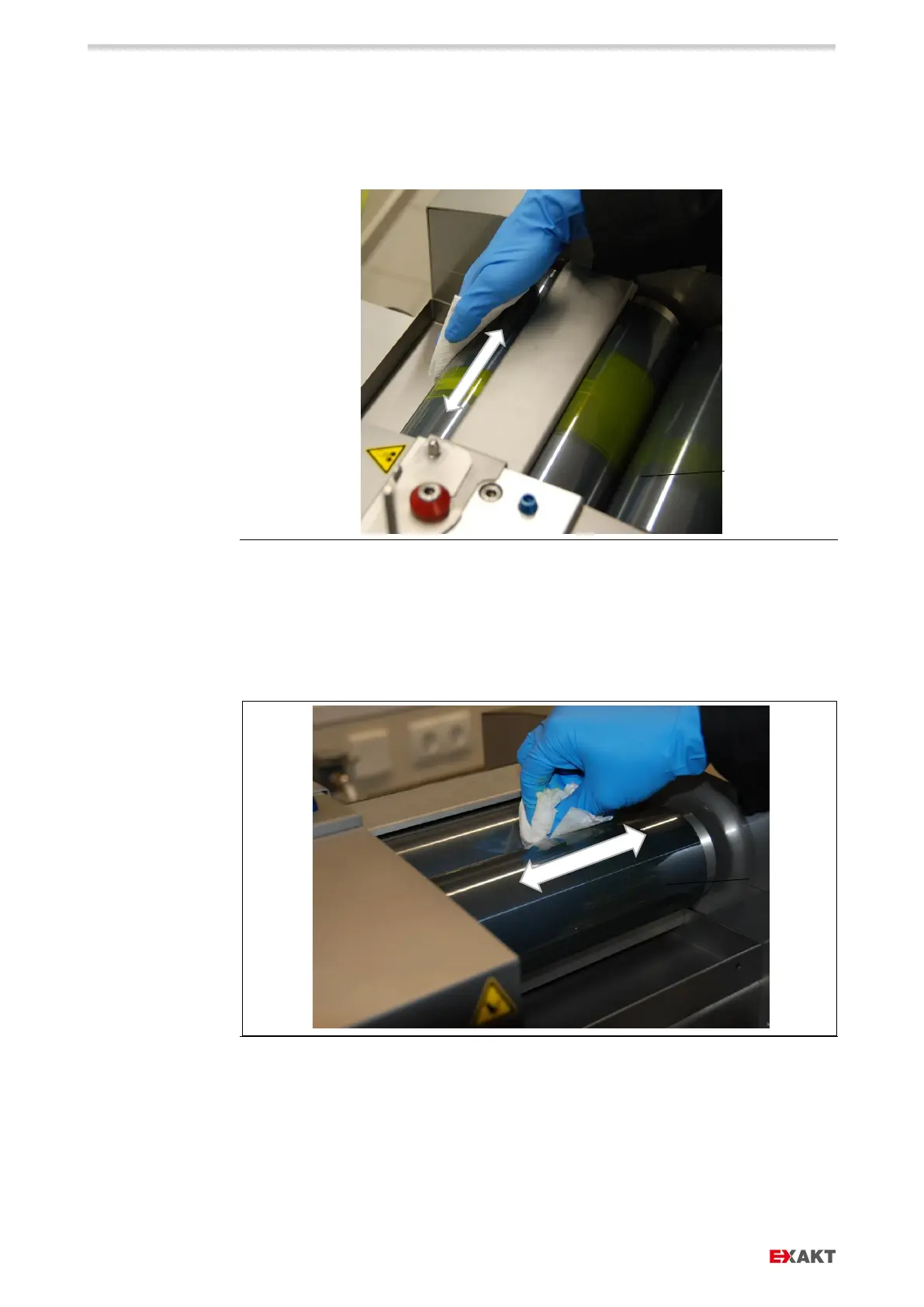 › Place cleaning towel as far away from the roller gap as possible and move to