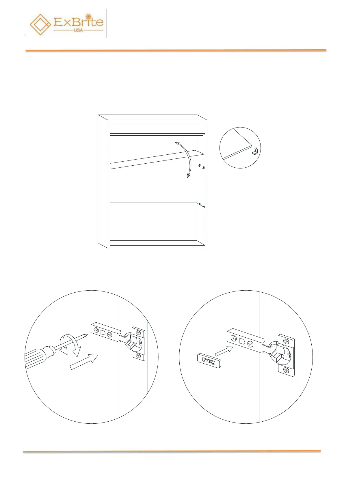 Adjust gap between door and cabinet Install the Hinge cover