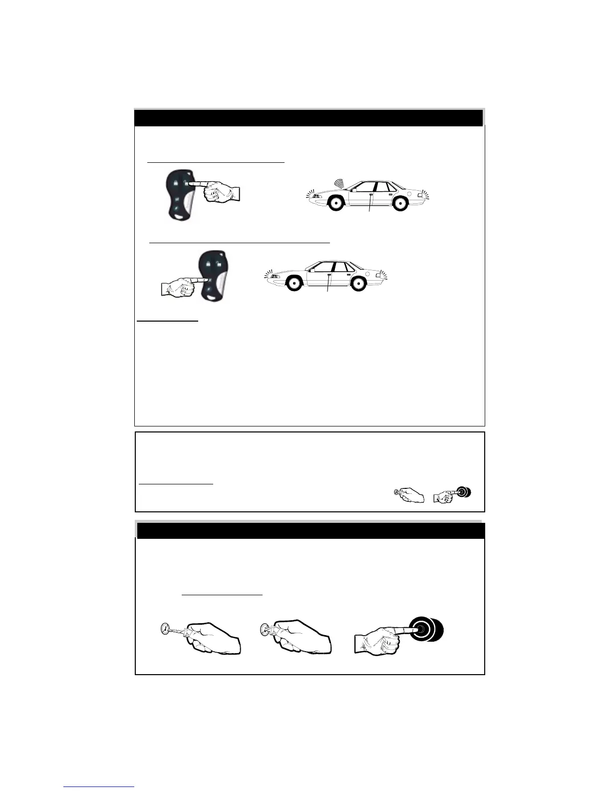2) SILENT Remote Control Disarming: Press & Release the Small