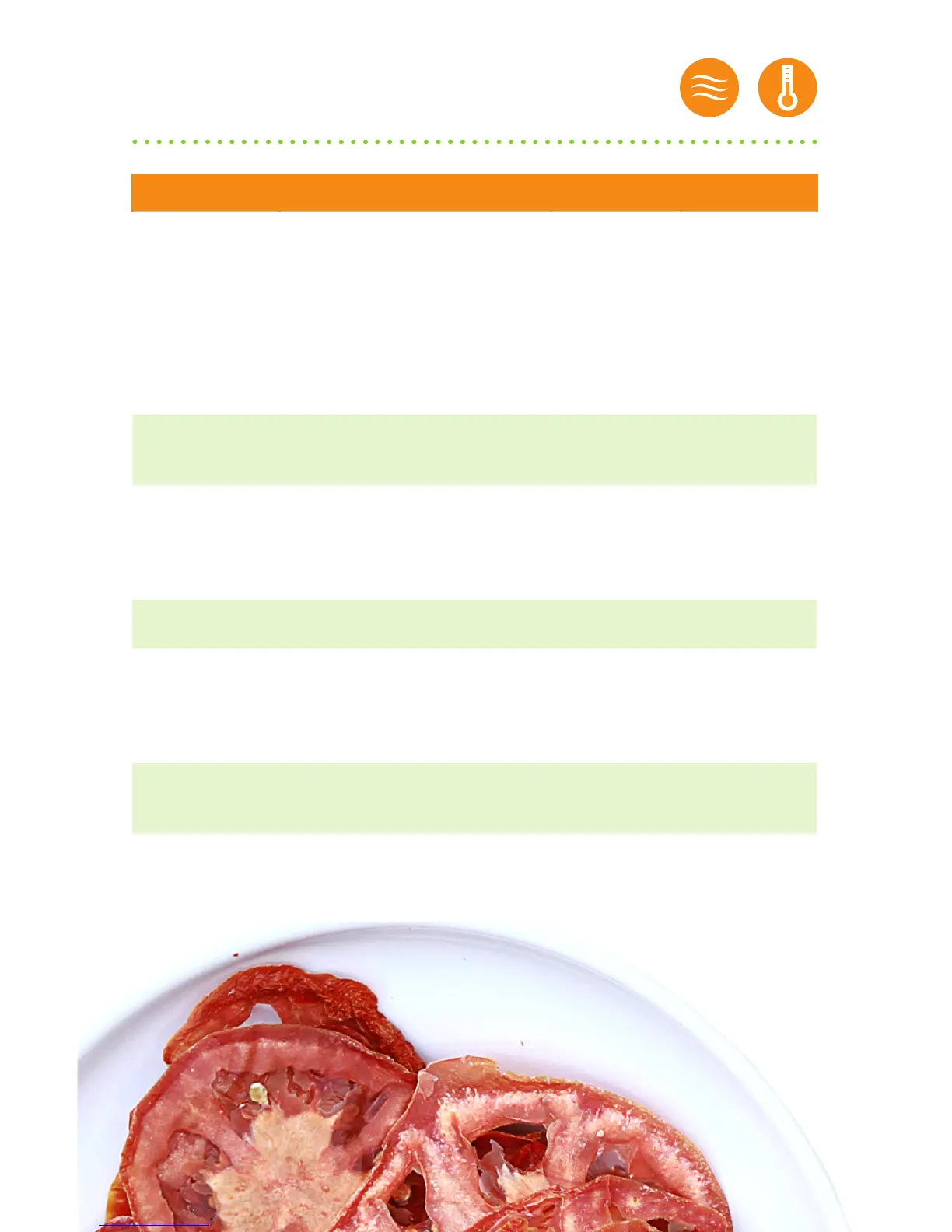 Turnips Peel & cut into 3/8” slices. Brittle 8-12 hours