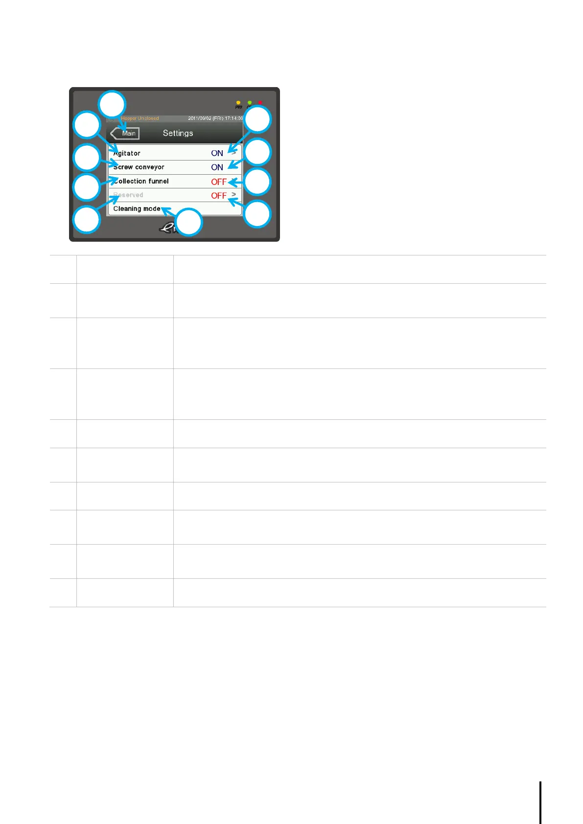 Displays the current screw conveyor status.